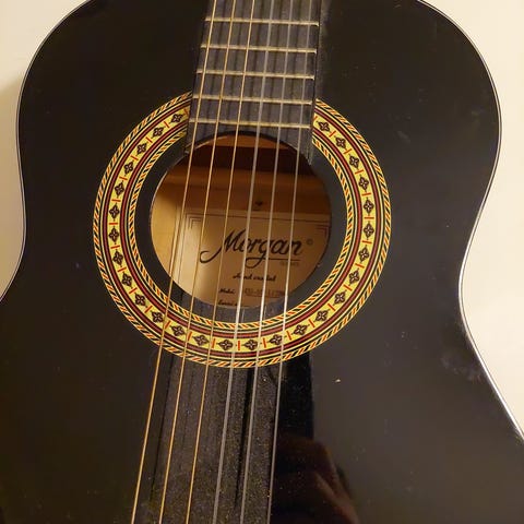Jeg selger min kjære gitar fordi jeg skal flytte bort. Størrelsen er fantastisk for reisende eller nybegynnere. Inkludert veske og ekstra snorer! :)