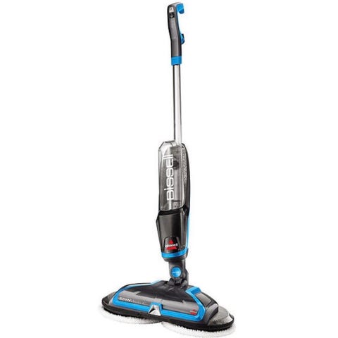 Gulvmoppen Bissell Spinwave til harde gulv med svingstyring, justerbar vannmengde og spray-utløser byr på uanstrengt rengjøring av gulvene dine. To sett med moppeputer medfølger, og de vil etterlate hjemmet ditt skinnende rent.