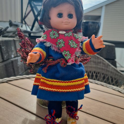 Tilstanden er kun satt ut i fra det elektriske som er utestet. Grunnet alder kan det være det elektriske ikke fungerer. Mulig det mangler et batterilokk. Funnet under rydding av loft. Ikke sjekket utover visuell rask sjekk. Ingen spesielle ting å bemerke utover det som allerede er nevnt. Hva dukken kan gjøre aner jeg ikke, men jeg vil tro den en gang i tiden laget noen lyder. Litt hard som dukke grunnet innmaten, men sikkert fin for samlere eller de litt eldre barna.