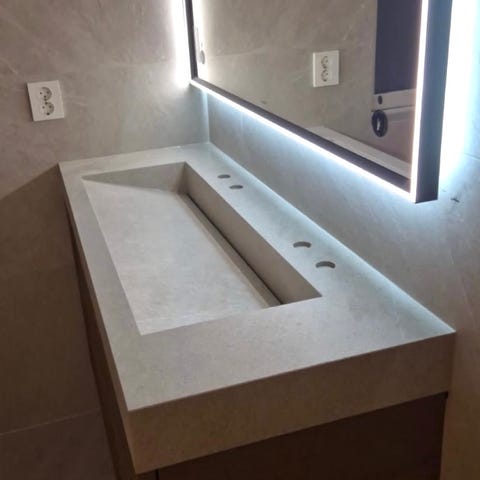 Benkeplaten er i laminert spon, slitesterkt og lett å vedlikeholde. Selges grunnet feilkjøp mål: L: 2990mm, Dybde: 465mm og 20mm tykk. Ny pris 6000 ,00 eks mva.