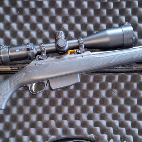 Løpslengde er på snaue 42cm som gjør den til en perfekt hundeførerbørse med sin lette Vekt på 3.1kg (med zeiss v4 3-12x56 og svemko demper)