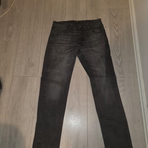 Siste buksa er mørkeblå, men har en lys « vask», og den er i st 33/36