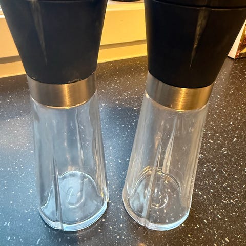 Følger med to stoffservietter i grå og rød.