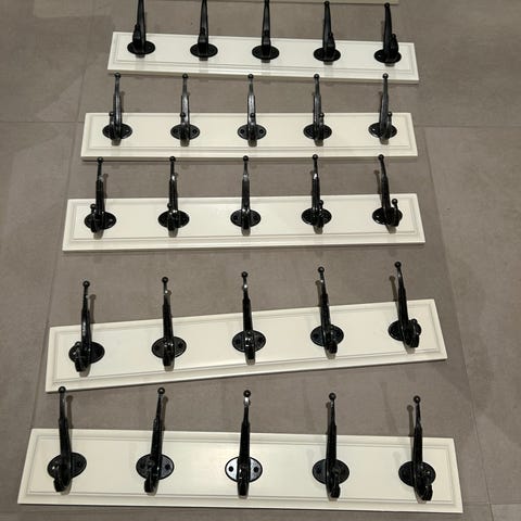 Selger 6 stk møbelbein, svart og messing. De var brukt på en kommode. Noen har bittesmå bruksmerke (se bilder), men er generelt sett i god stand. Høyde 17cm, bredde 5,5cm/2,5cm. Enkle å montere. Selges samlet for 250