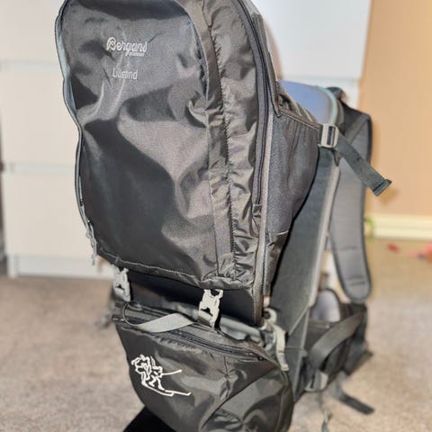 Designet for bæring av barn med justerbare stropper og polstret rygg for komfort. Egnet for utendørs bruk og turer med barn.