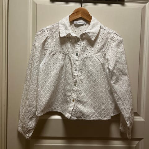 Skjorte fra Pieces med «fjærdetaljer». Glatt innerskjorte som gjør at den ikke er gjennomsiktig.