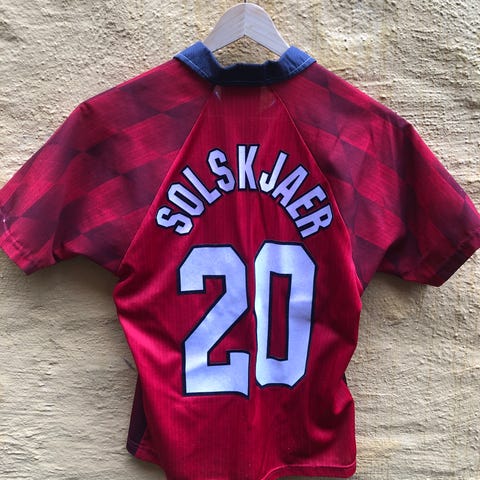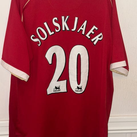 Selger denne ekstremt flotte Manchester United drakta, med "Solskjaer 20" på ryggen og CL patch på ermet. Drakten er i størrelse medium, og ble brukt i 1998/99-sesongen. Dette er da en 1-star (1 CL-stjerne i klubbemblemet), men dessverre er Solskjaer-trykket på ryggen, det trykket som ble benyttet på 2-star drakten sesongen etter, altså 1999/00-sesongen. Drakten i seg selv er relativt sjelden.