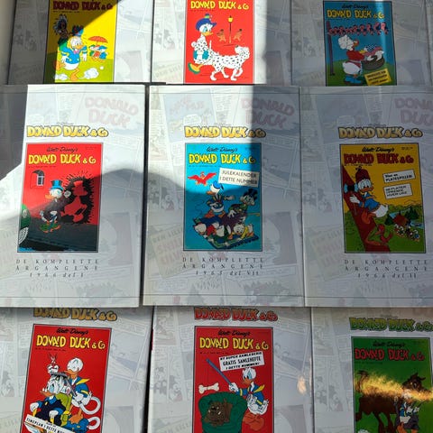 9 store Donald Duck-bøker og 7 i den blå serien.