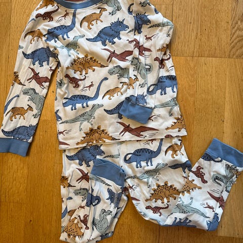 H&M, Pyjamas, barneklær i størrelse 110/116, 4-6år, unisex design. Rød farge med mønster. Materiale ikke spesifisert.