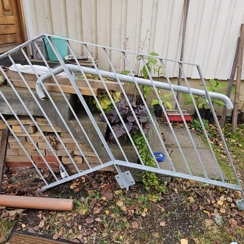 Sklisikker trerekkverk. Lengde: 185 cm.