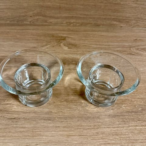 Rosendahl lysestaker i glass, 2-pakning i original eske. Lysestakene er laget i klart glass og har en bred åpning med plass til telys.