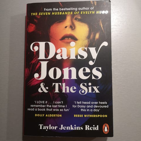 Daisy Jones & The Six bok med omslag som viser en kvinne med fargerikt design. Boken er en fiksjonsroman skrevet av Reese Witherspoon.