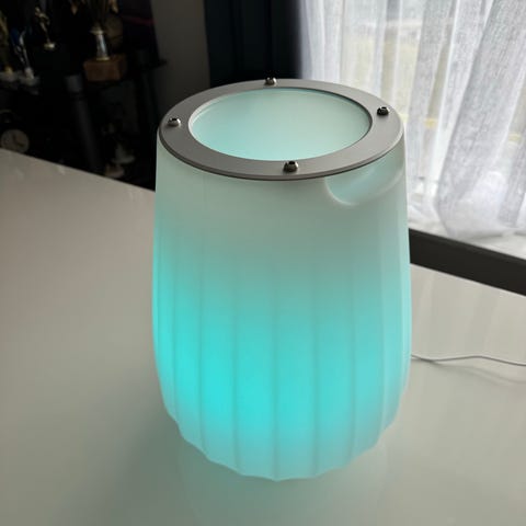 Begge er en LED-lampe, Bluetooth-høyttaler og en drikkeholder eller vinkjøler i ett.