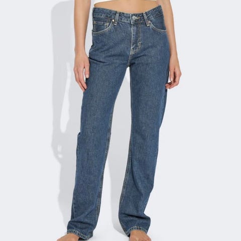 Levi's hverdagskjole i denim, blå farge, størrelse S. Kjolen har lange ermer, knappelukking foran og to brystlommer med klaff. Brukt kun noen få ganger