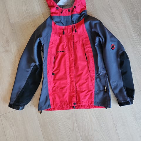 Kort, tynn, sommer turjakke, dame., str S. Merke: Mammut. Pent brukt. Materiale: Nylon med polyester. 2 lommer og en brystlomme foran. Stramming rundt håndleddene og nederst på jakken. Sendes ikke. Må hentes.