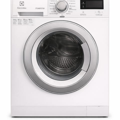 Electrolux Frontmatet vaskemaskin med frontåpning for lasting av klær. Maskinen har en romslig trommel i rustfritt stål og er designet for effektiv vask av klær.