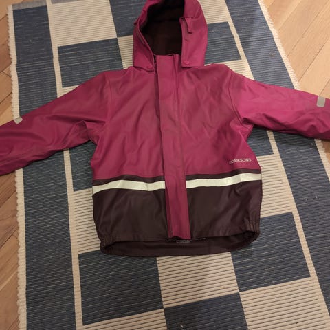 Didriksons galon regnsett med fleece inni. Brukt litt og pent. Votter er ikke av samme merke og følger i tillegg, hvis ønskelig. Et nytt sånt sett koster mellom 700 og 900 kr. Ungen brukt den i alderen 7-8 år. Hentes i Oslo sentrum.