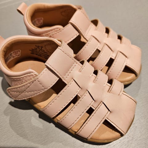 H&M sandaler for barn, unisex, størrelse 26. Veldig fine. Sandalene er brune med borrelåsfester for enkel justering. Sålen har mønster for bedre grep. Laget i mykt materiale som gir komfort ved bruk.