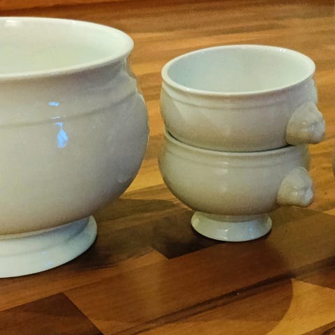 Selger to løveskåler samlet. Rommer 6 dl, 7 om du vil ha suppe helt opp til kanten. Ingen synlige merker. Ønsker helst at de blir hentet ettersom jeg ikke kan garantere for frakt.
