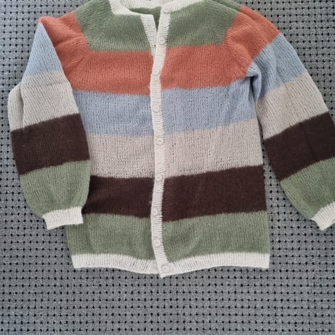 Nydelig cardigan i polyester, akryl og ull 6%. Lite brukt. Kjøpt ny for kr 800,-