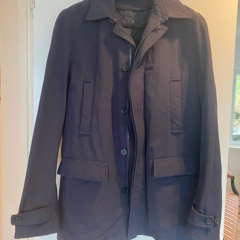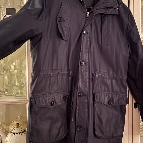 Flott jakke fra kvalitetsmerke.Zegna. Mange flotte detaljer og fuskepels på krage. Skinn i og rundt lommer. Flott jakke med fint snitt. Kan strammes i midje