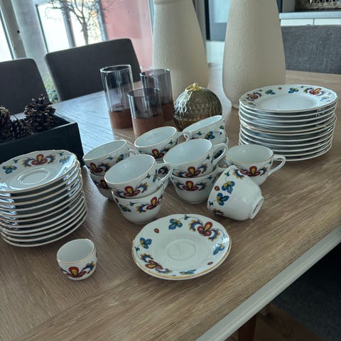Porsgrunn kaffekopp og fat sett med melkekanne