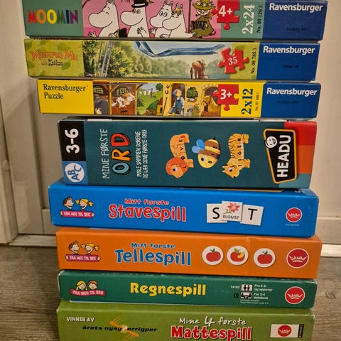 Ksiazka Pinokio i 4 gry planszowe po polsku, wszystko razem 50 nok :)Assortert samling av brettspill og kortspill med ulike temaer og design. Spillene passer for forskjellige aldersgrupper og kan brukes til underholdning i sosiale sammenkomster.