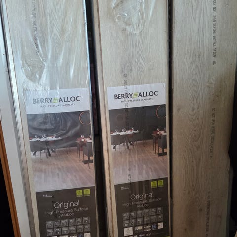 Vi hadde to pakker til overs. 2,96 m2 per pakke. Ikke åpnet. Må hentes på Kråkerøy.