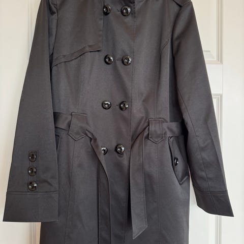 Svart kåpe/frakk i tynt stoff. Brukt 1-2 ganger. Strl M-L. Selges da den får for lite bruk.
