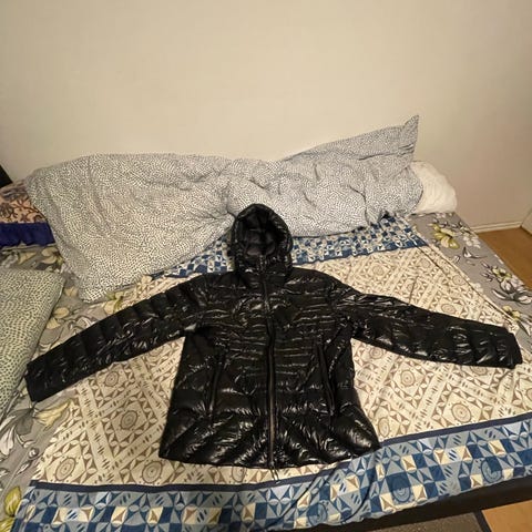 Selger en brukt dunparkas fra Giorgio Armanis linje Armani Collezzioni.