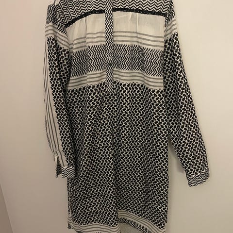 Kjole fra Neo Noir i lin og bomull. Sitter veldig fint på! Litt ødelagt i brystpartiet. Mangler en eller to knapper (en følger med), kan helt sikkert fikses🪡 ellers hel og fin🤍 Str. 36 - passer S/M.