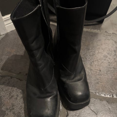 Pene, høye skinnstøveletter, mørk brun - lite brukt
