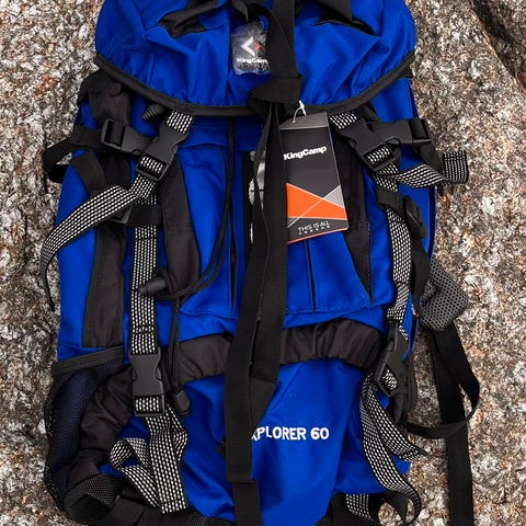 KingCamp Explorer 60 ryggsekk med kapasitet på 60 liter. Sekken er blå, og ryggsekken er laget for utendørs bruk med flere lommer og justerbare stropper for komfort. Passer til både dagsturer og lengre ekspedisjoner!