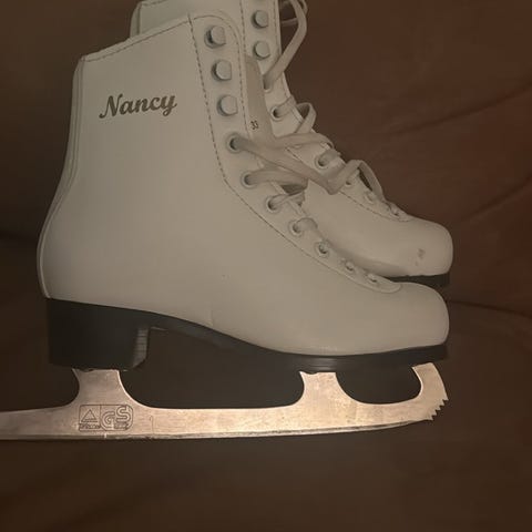Pent brukte kunstløpskøyter med 8 2/3 jern. Størrelse 34.