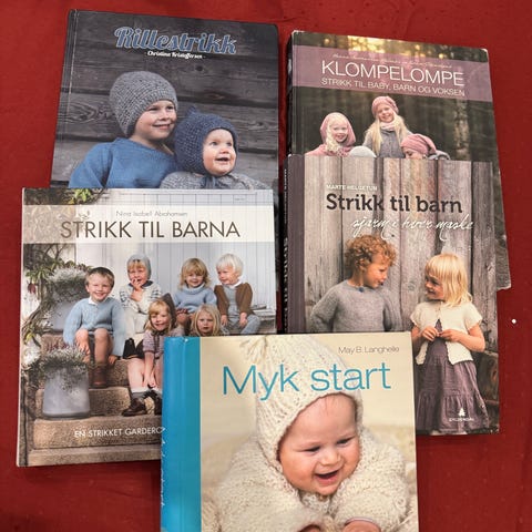 Selger 5 stk bøker med strikkeoppskrifter.