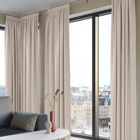 Selger kjempefine gardiner fra Ikea. Har 4 stk totalt. De er lagt opp til å passe 231 cm høydet i rommet. Lagt opp med selvklebende/stryk på tape, så det er enkelt å endre på lengden på gardinene hvis man ønsker. Fargen er en nøytral lysgrå/ greige. Nypris 899kr.