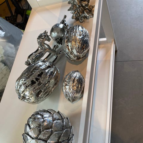 Denne vakre gyngehesten fra Lene Bjerre ser flott ut på et sølvfat, ledsaget av telysglass og en liten vase med sjarmerende blomster. Den ser nydelig ut på et juletre også.