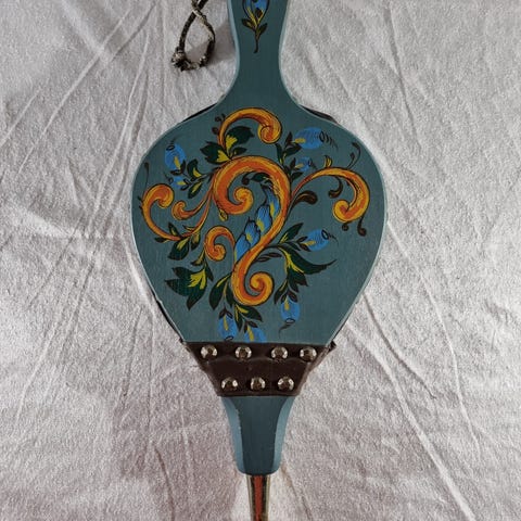 Rosemalt peisblåser i brunt treverk – håndlaget norsk kvalitet fra RK-Smia