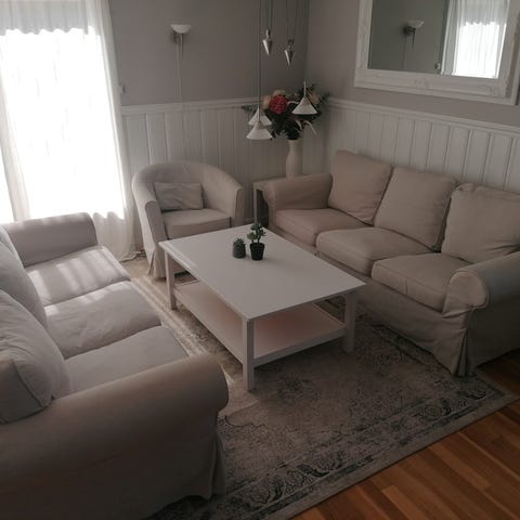 2 stk Hyltarp sofa 3 seter med hel pute selges.