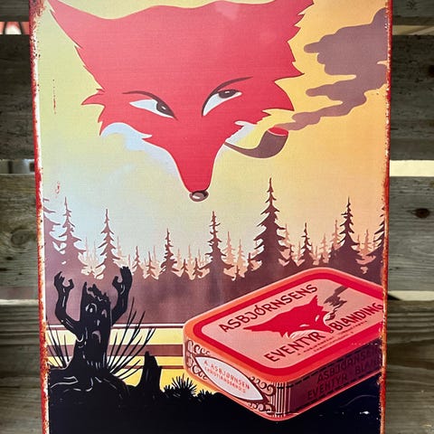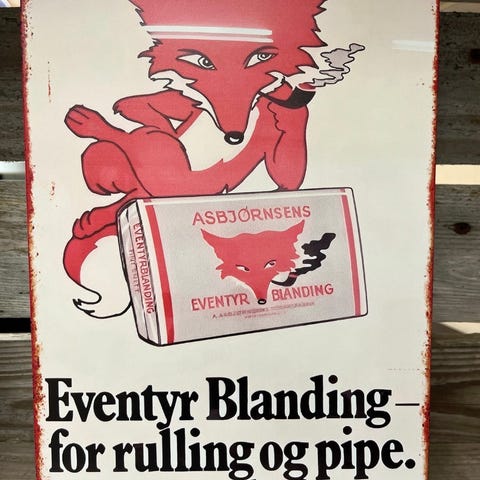 Skilt i Tynnmetall reprodusert med bilde av: Asbjørnsens eventyr blanding, i god form 20X30 cm. Hentes eller sendes mot porto kr 65,- m/sporing eller med Fix ferdig. Ønsker du og kjøpe flere varer på en frakt, ta kontakt før du kjøper. For og se mine andre annonser, trykk på profilbilde og så annonser. NB! ER PÅ JOBB MAN - FRE MELLOM 06:30 - 16:00. NOEN GANGER MÅ JEG VENTE TIL ETTER JOBB MED OG SVARE. mvh Carsten