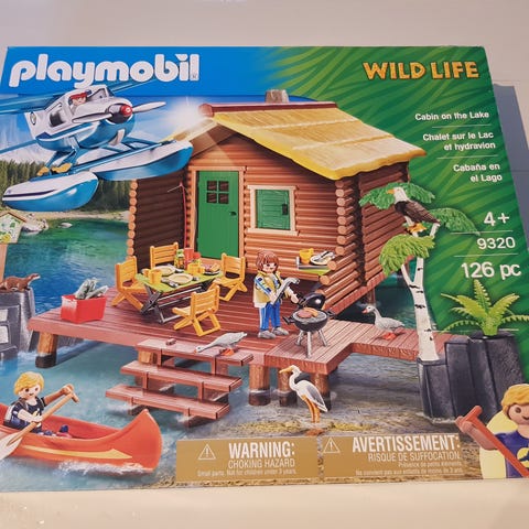 Veldig kult og veldig pent brukt velutstyrt Playmobil trehytte med masse dyr og tilbehør. 2 bjørner, 3 rever, 3 småfugler, en ugle, et par ender en stor fugl og en slange følger med, samt to playmobilfigurer. masse gull, kjøkkenutstyr, kamera, kikkert, fisker, m.m. Det er også en hengebro med "fallemmer" over til en annen liten øy. Tror det eneste som mangler er en liten mus.