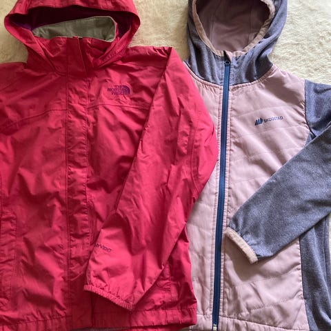 Lilla regnjakke med pusete fleece inni. Veldig god på vinter og sen høst, tidlig vår. Jenta vår likte denne veldig godt, men vokste ut av den raskt. Pen og hel jakke som sterkt anbefales!