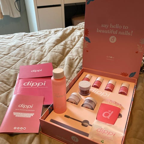 Dippi neglesett. Prøvd en gang og passet ikke mine negler dessverre. Håper noen andre får glede av dette. Følger med alt man trenger for og legge negler.