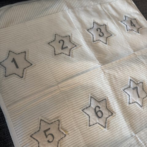 På undersiden står det en håndskrevet hilsen, dette kan enten sees som en personlig detalj eller dekkes til med filt under bruk.