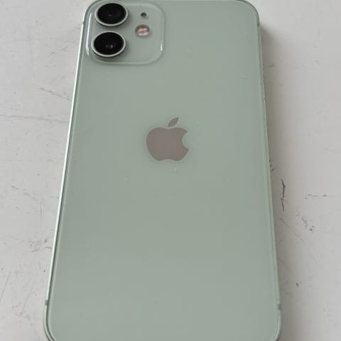 Apple iPhone 12 mini med 64 GB lagringskapasitet i hvit farge. Mobiltelefonen har en skjerm med innfelt kamera og dobbel bakre kameraoppsett. Batteriets maksimale kapasitet er 79 %. Enheten har knapp for volumkontroll og SIM-kortskuff på siden. Passer for brukere som ønsker en kompakt smarttelefon med iOS.