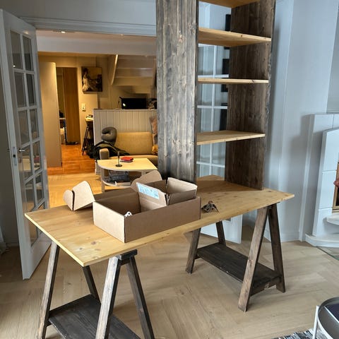 Skrivebordet er designet med trepaneler også i front noe som gjør det vakkert fra alle kanter. Perfekt om du ikke ønsker skrivebordet plassert mot en vegg.