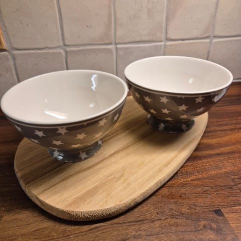 – 4 stk større skåler i samme serie som tallerknene: 80kr