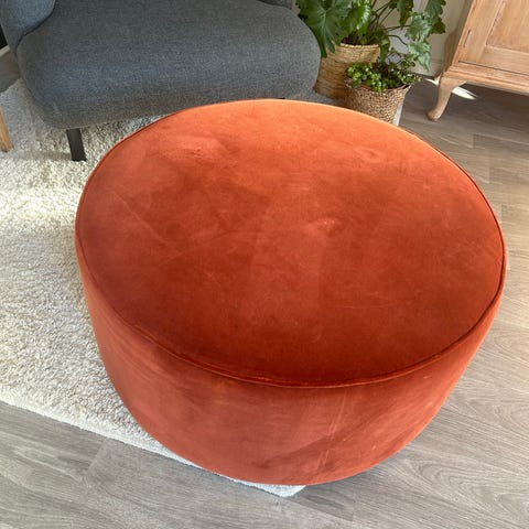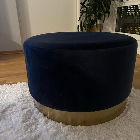 Stor blå(blågrønn?) puff. Solid, ser fin ut.