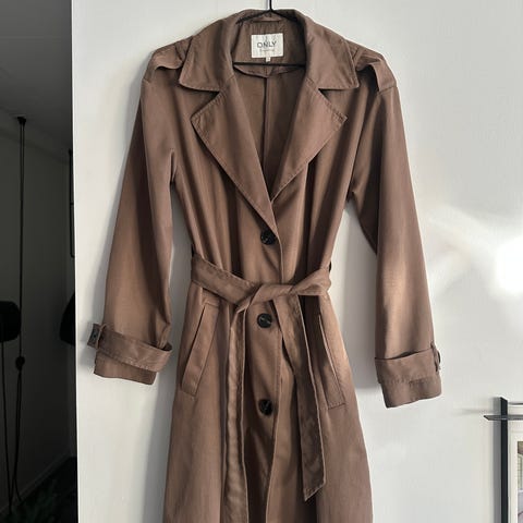 Kul trenchcoat fra Only, str S, farge mørk beige. Kun brukt et par ganger, - som ny!