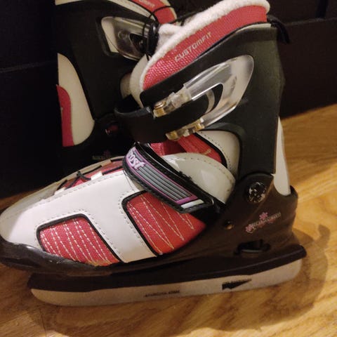 Pent brukte justerbare hockeyskøyter i størrelse 33-36.